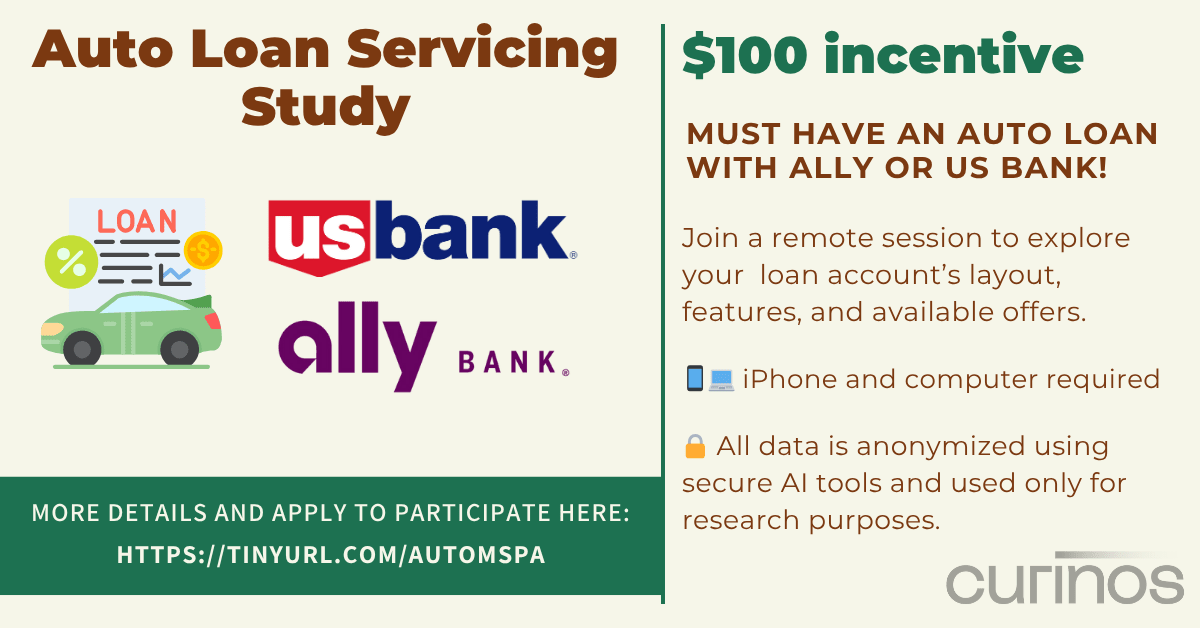 $100 | Auto Loan - Account Servicing Study ($50 bonus for US Bank account loan!)